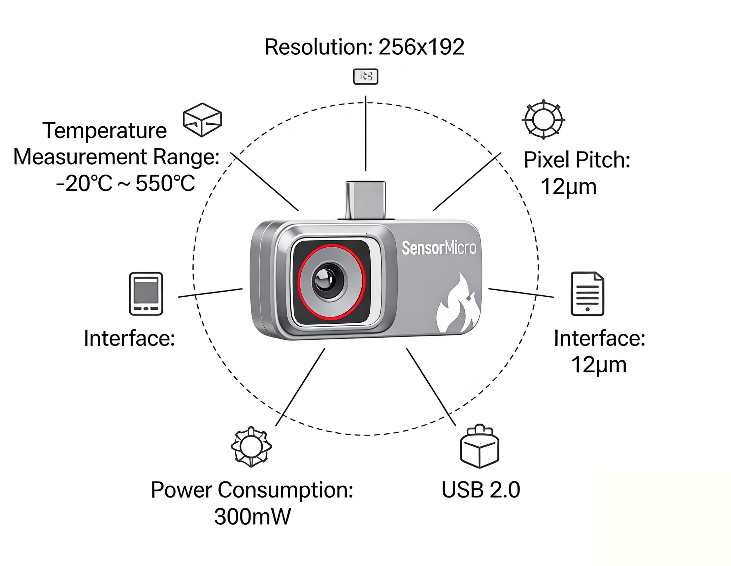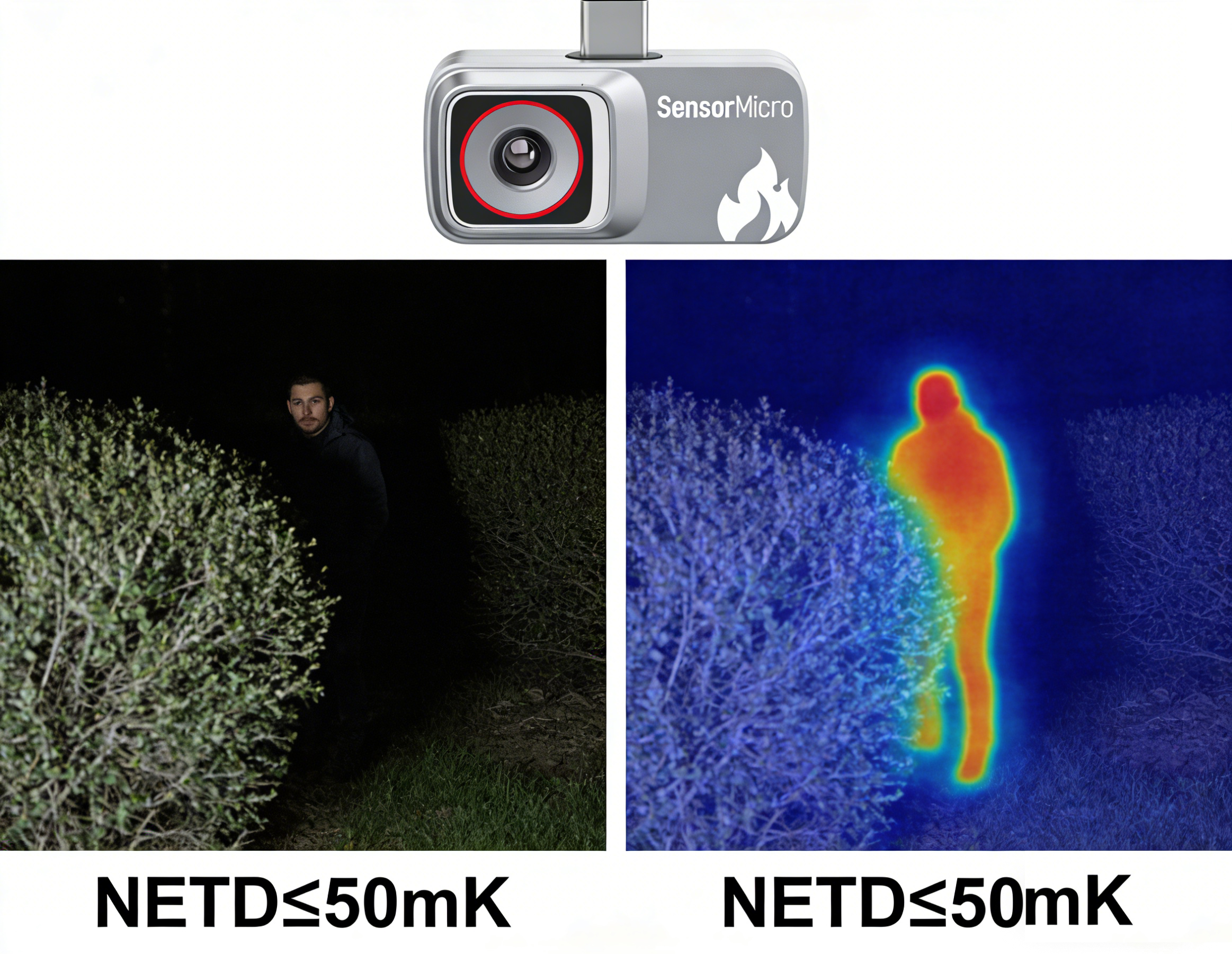 High Performance, Low Power: Features a proprietary detector with an NETD of ≤50mK for crystal-clear imaging; consumes only 300mW of power, making it perfectly suited for portable devices.